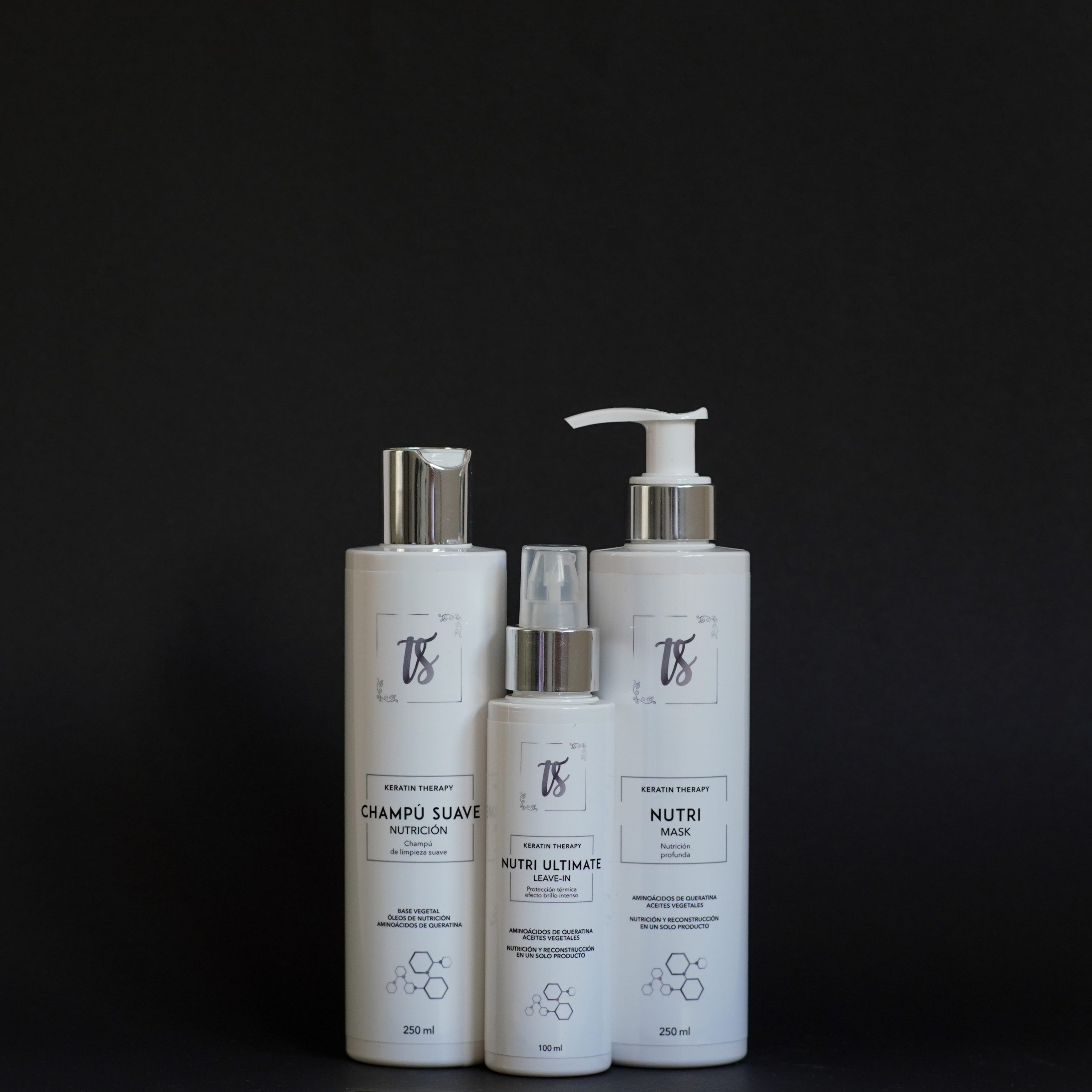 Queratina y proteínas que refuerzan la estructura interna del cabello, reduciendo la rotura y aumentando la durabilidad del tratamiento.
